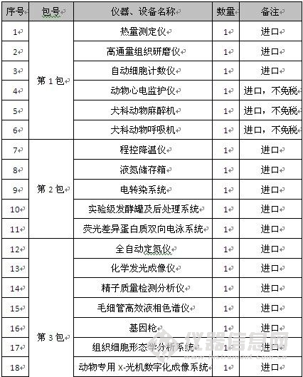 中國農科院特產研究所2013年專項資金儀器設備購置項目7月底公示